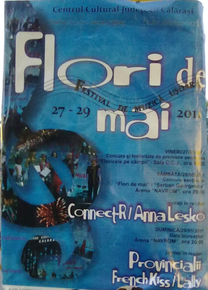 Centrul Cultural Judeţean Călăraşi organizează, în parteneriat cu Consiliul Judeţean Călăraşi şi Primăria Municipiului Călăraşi, Festivalul-concurs de interpretare a muzicii uşoare “Flori de mai”, ediţia a XXIII-a. Festivalul se va desfăşura în perioada 27- 29 mai 2011, după următorul program: